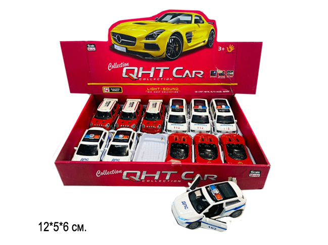 Модель металл. арт. 2415B ВАЗ ДПС инерц. свет, звук (12 шт.) шоубокс•У модели открываются все двери, капот и багажник, детально проработанный салон, световые и звуковые эффекты. Игрушка с инерционным механизмом: оттяните ее назад и отпустите - машинка умчится вперед, набирая скорость.