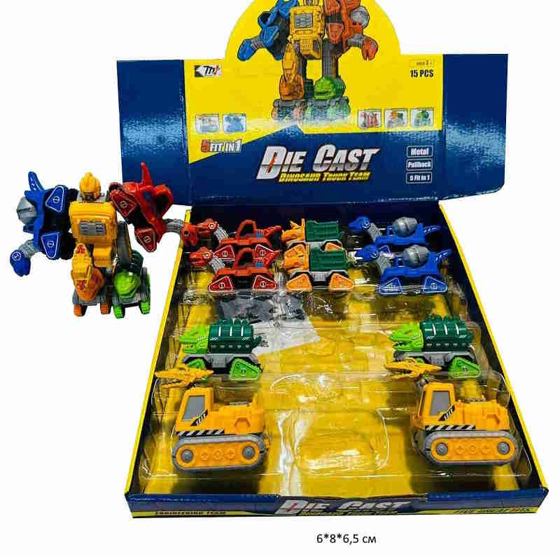 Модель металл. арт. 0783-356 "Спецтехника-дино" 5 в 1 трансформер (15 шт.) шоубокс•