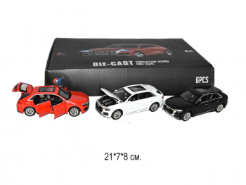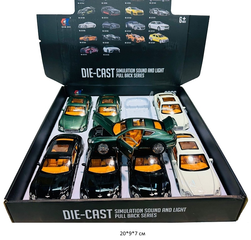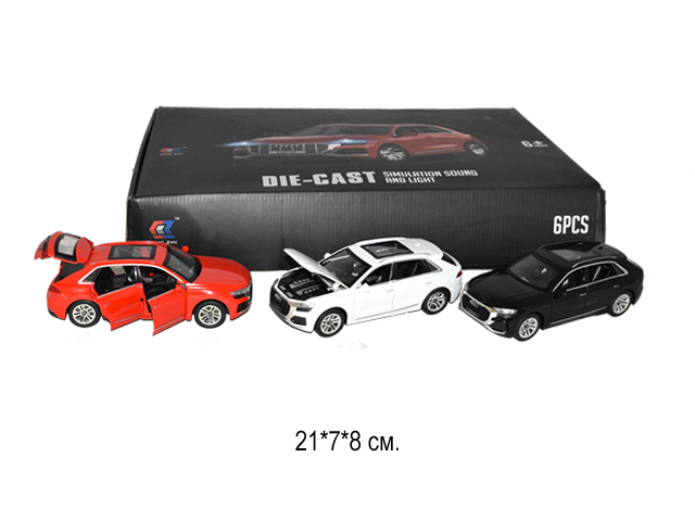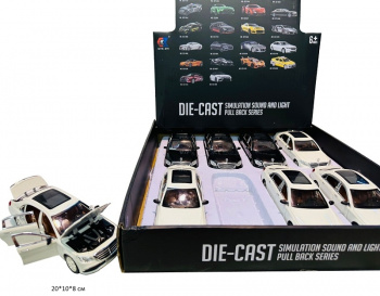 Модель металл. арт. M92311 Седан свет, звук (8 шт.) шоубокс•~У модели открываются все двери, капот и багажник, детально проработанный салон, световые и звуковые эффекты. Игрушка с инерционным механизмом: оттяните ее назад и отпустите - машинка умчится вперед, набирая скорость.