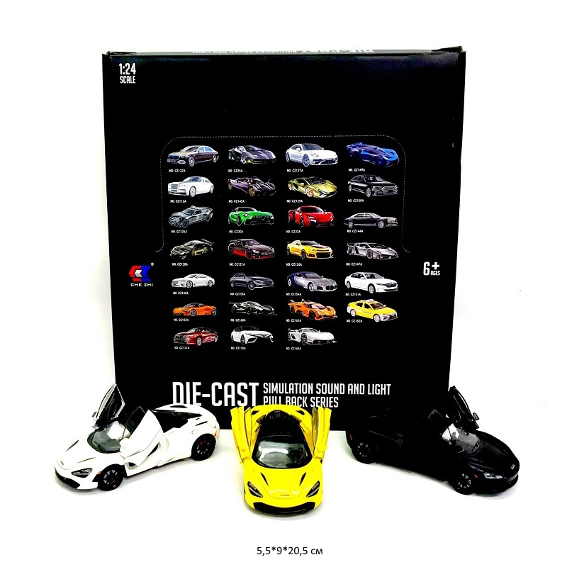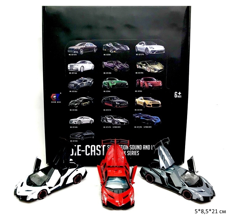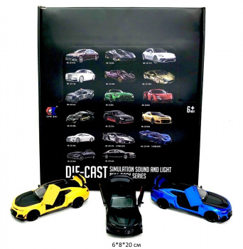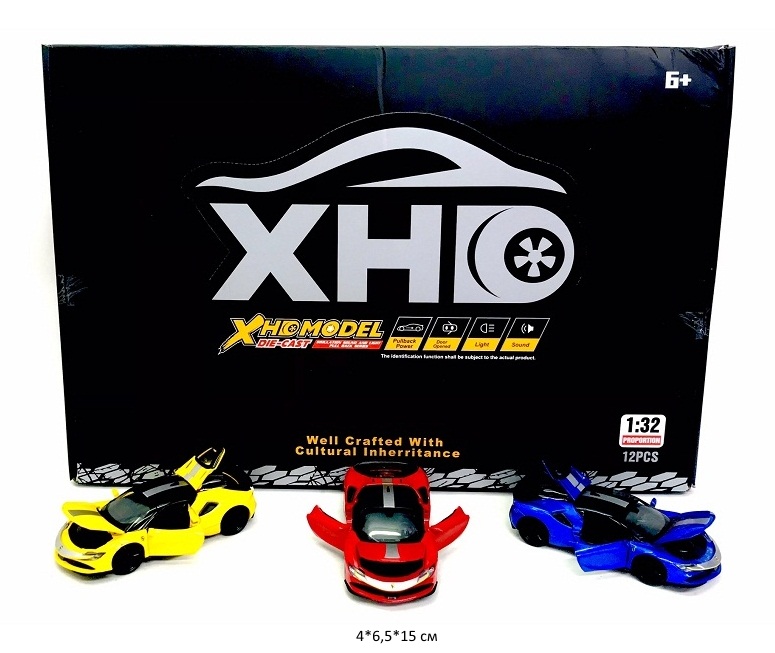 Модель металл. арт. XA-3228B Спорткар цвета микс (12 шт.) шоубокс•Открываются двери и капот, детально проработанный салон.