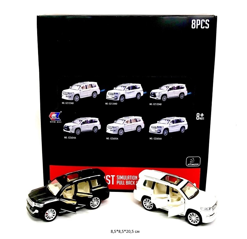 Модель металл. арт. M346 Лексус Джип (8 шт.) шоубокс_У модели открываются все двери, капот и багажник, детально проработанный салон. Игрушка с инерционным механизмом: оттяните ее назад и отпустите - машинка умчится вперед, набирая скорость.