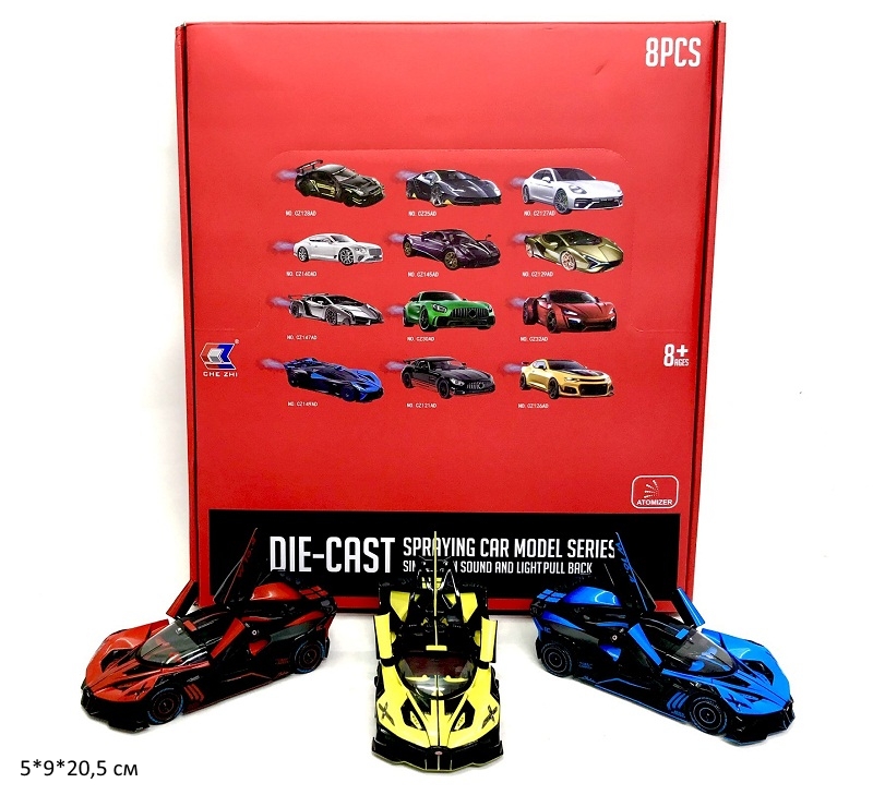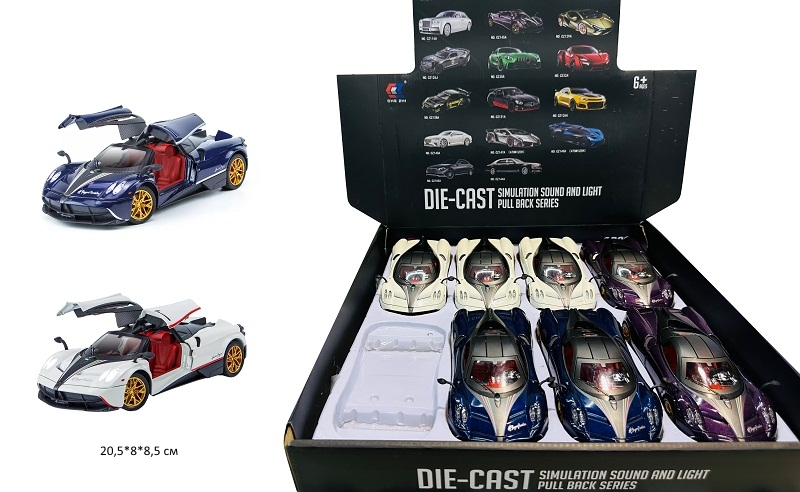 Модель металл. арт. XA-2405B Спорткар цвета микс (8 шт.) шоубокс•Открываются двери и капот, детально проработанный салон.