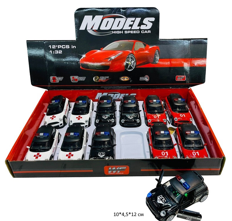 Модель металл. арт. ML53602-12LF Спецслужбы в ассортименте инерц. свет, звук (12шт.) шоубокс•