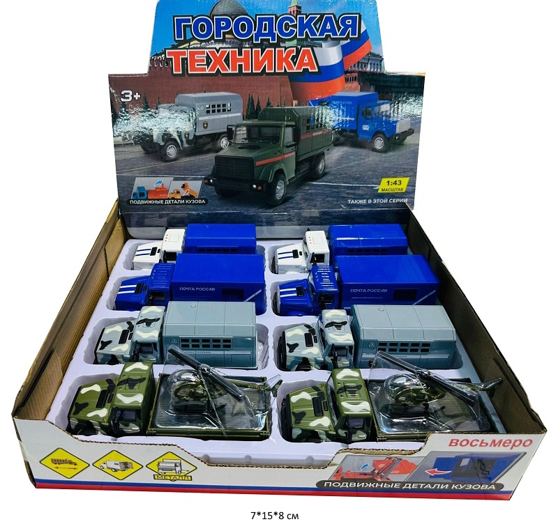 Модель металл. арт. TCC1825-12D Грузовик военный, ДПС, Полиция (12 шт.) шоубокс_/18 шт./Детально проработанный салон, открываются двери.