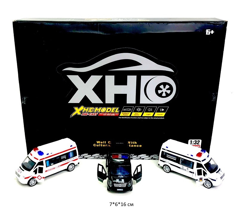 Модель металл. арт. XA3233B Универсал цвета микс свет, звук (12 шт.) шоубокс•Детально проработанный салон, открываются двери, капот, багажник.