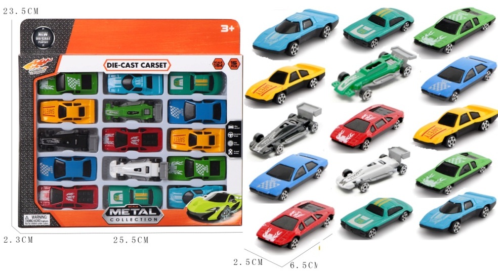 Набор из 12 металлических машинок, каждая из которых имеет свой цвет и дизайн в стилистике спорткар. Машинки подходят для игры с треками. Их колеса быстро вращаются, корпус обладает идеальным весом и формой, чтобы набирать высокую скорость.