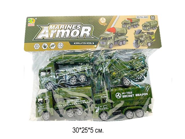 Машина инерц. арт. BQ600-4 Военная спецтехника Набор 4 шт. в пак.•