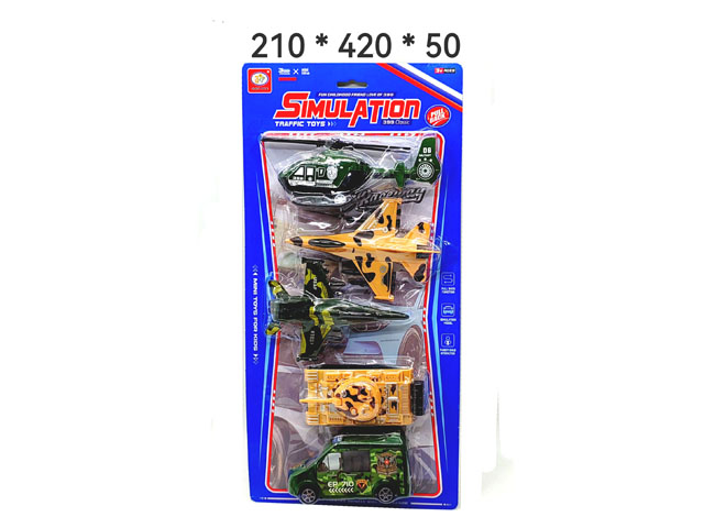 Набор машин арт. 399-357F Военная техника зеленая и оранжевая 5 шт на листе_