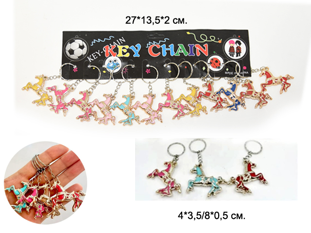 Брелок арт. GH-39-709/GK-7945 Лошадь в сбруе металл эмаль цвета микс 12 шт. на листе