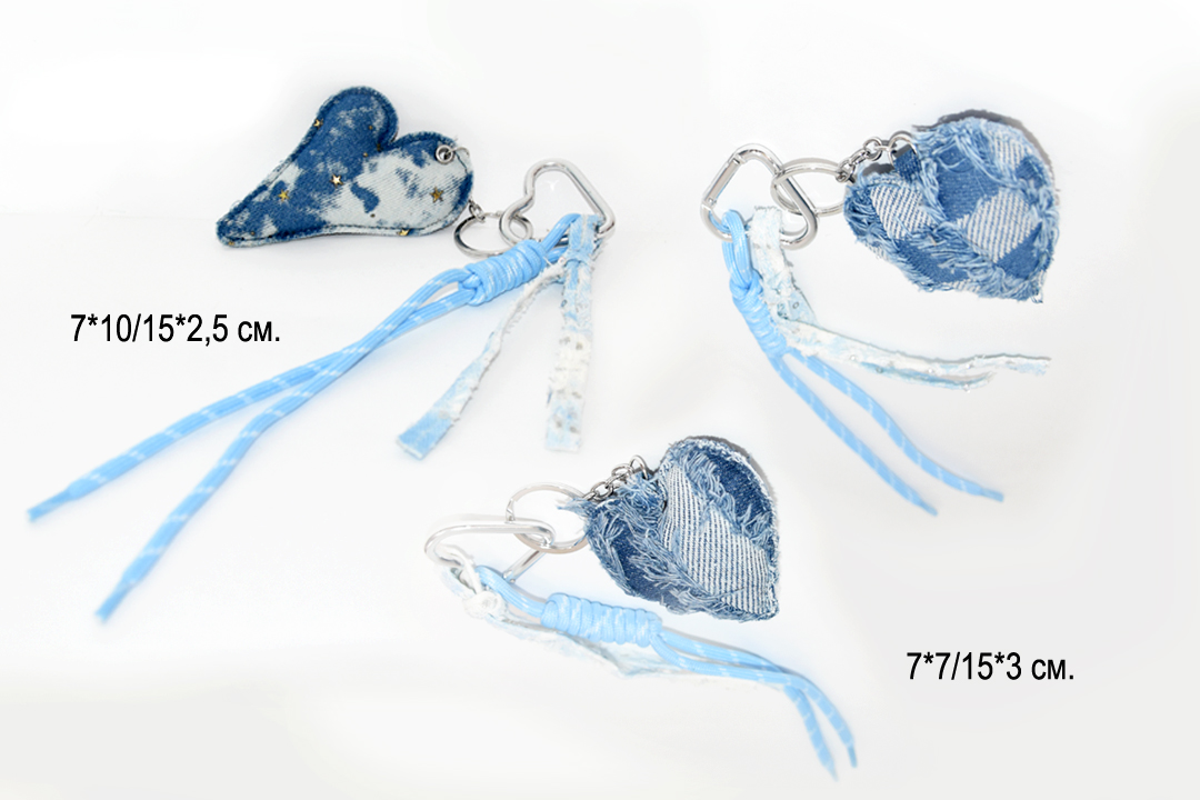 Брелок-подвеска арт. 4281-3-209 Сердце джинсовое 7*10 см в ассортименте 1 шт в пак. (12 шт.)