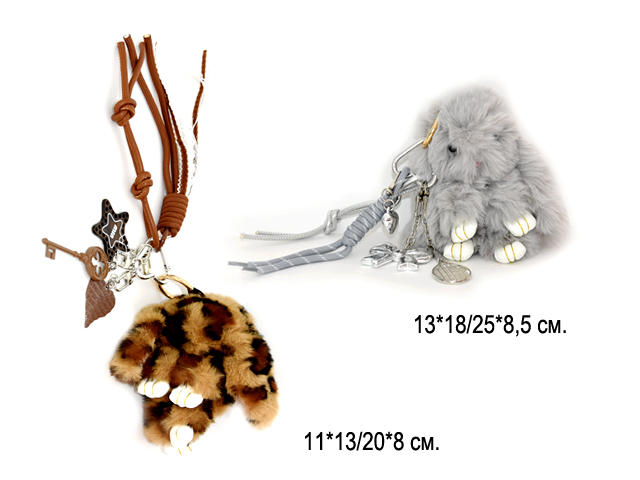 Брелок-подвеска арт. 209393 Двойной с меховым шариком 1 шт цвета микс в пак.