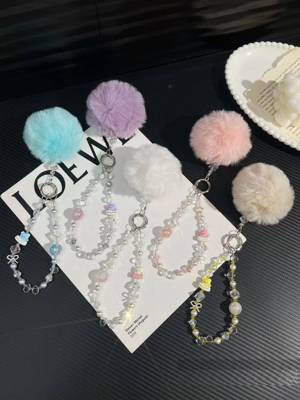 Брелок-подвеска арт. 209407 Медведь-бусина "Welcome" и меховой шарик 1 шт цвета микс в пак.