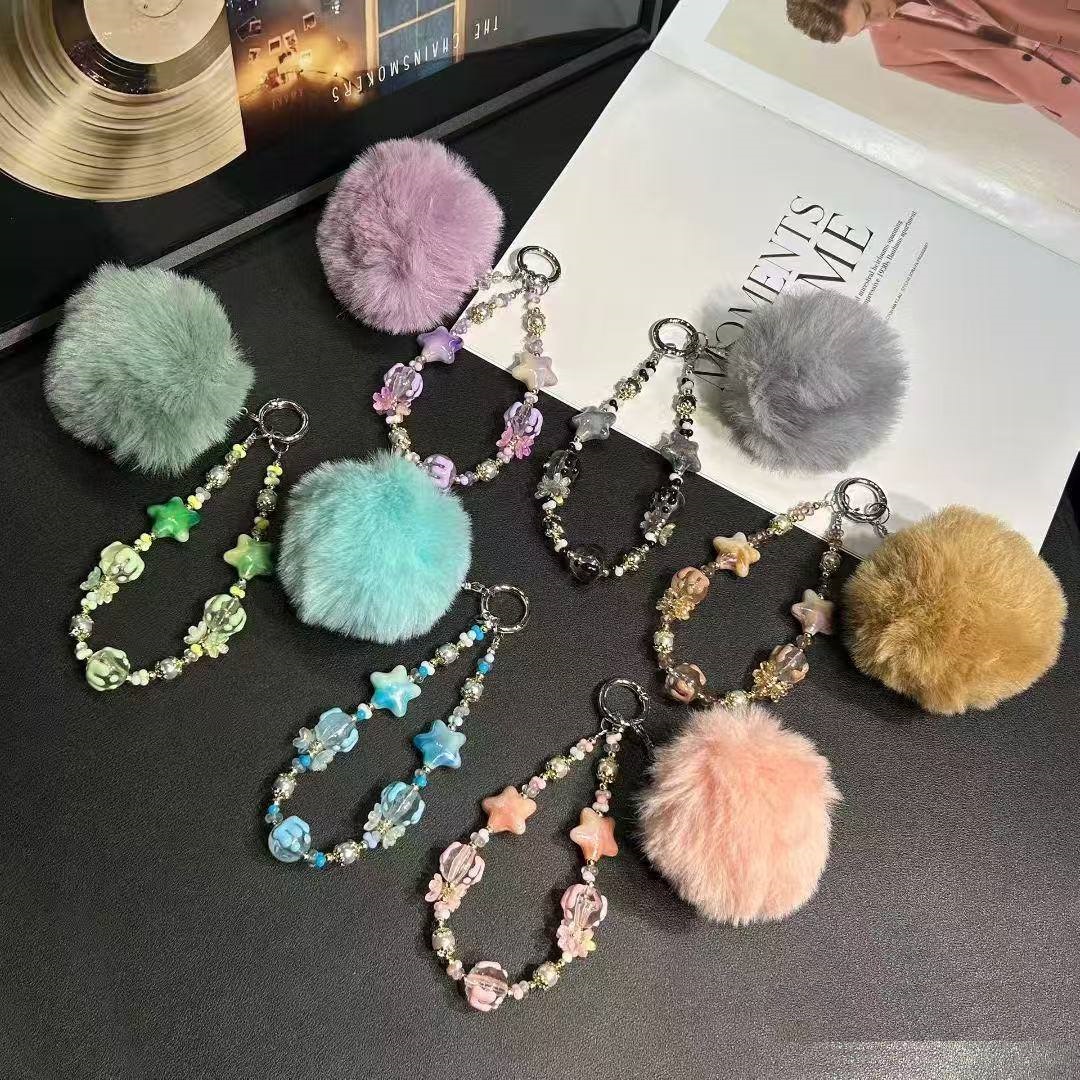 Брелок-подвеска арт. 209414 Звезда-бусина и меховой шарик 1 шт цвета микс в пак.