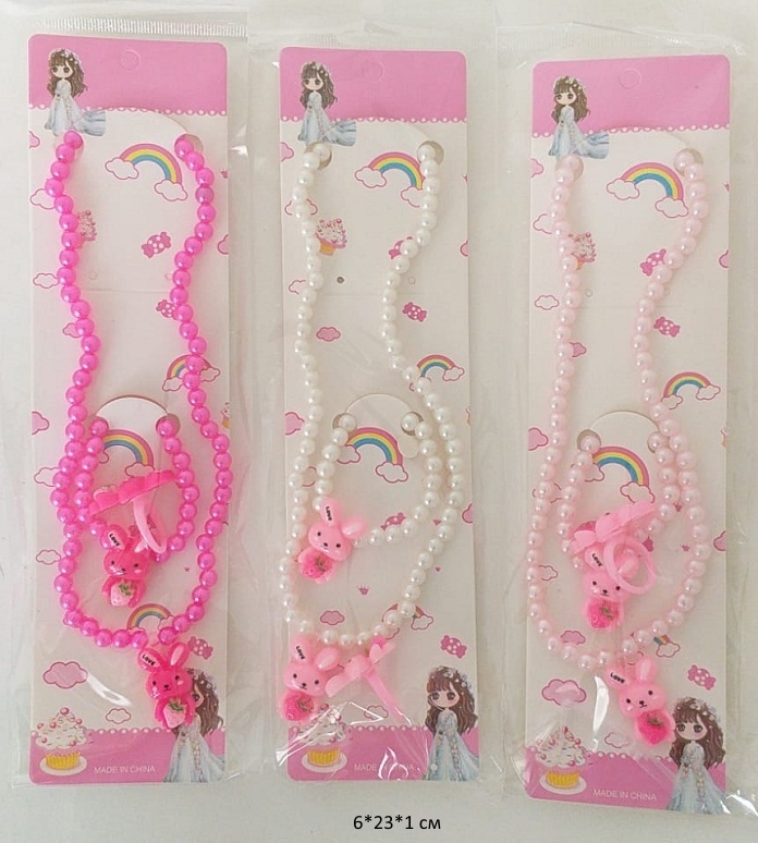 Набор украшений арт. YA009-50 "Зайка с ягодкой" Бусы, кольцо, браслет в ассортименте в пак.
